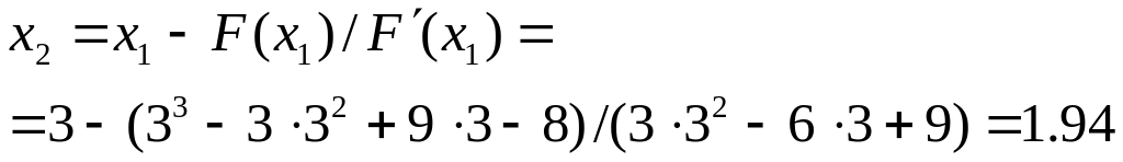 Вычислим с помощью метода Ньютона корень уравнения с точностью .