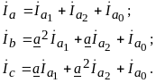 Для расчета несимметричных режимов применяют метод симметричных составляющих, представляя токи и напряжения отдельных фаз в виде суммы составляющих прямой, обратной и нулевой последовательностей. В частности, для фазных токов имеем
