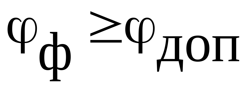 відповідність зчіпних якостей проїзної частини – порівнянням фактичних φф і мінімально допустимих φдоп значень коефіцієнта зчеплення; умова відповідності