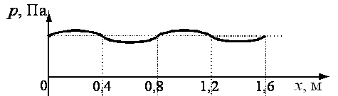 На рисунке представлен график зависимости давления воздуха от координаты в некоторый момент времени при распространении звуковой волны. Длина звуковой волны равна