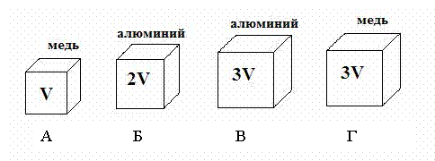 Необходимо экспериментально установить, зависит ли выталкивающая сила от объёма погружённого в жидкость тела. Какой набор металлических цилиндров из алюминия (Al) и меди (Cu) можно использовать для этой цели?