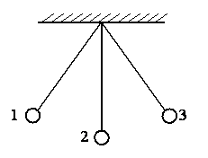 Математический маятник совершает колебания между положениями 1 и 3 (см. рис).