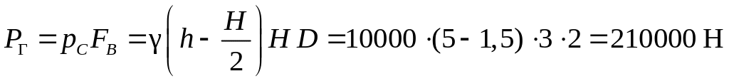 Величина горизонтальной составляющей силы давления на криволинейную стенку определяется по формуле
