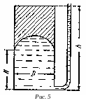 Задача. Вертикальный цилиндрический сосуд заполнен водой, находящейся под избыточным давлением, показание пьезометра h = 5 м. Нижнее днище сосуда плоское, верхнее имеет форму полусферы (рис. 5).