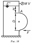 Задача 6. Определить силу давления на коническую крышку горизонтального цилиндрического сосуда диаметром D, заполненного жидкостью Ж (рис. 16, табл. 6). Показания манометра в точке его присоединения – . Показать на чертеже вертикальную и горизонтальную составляющие, а также полную силу давления.