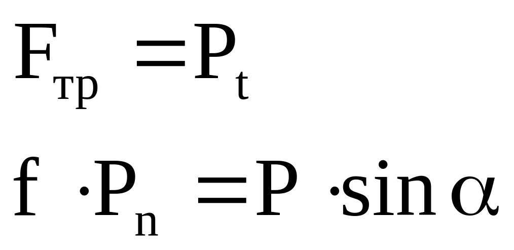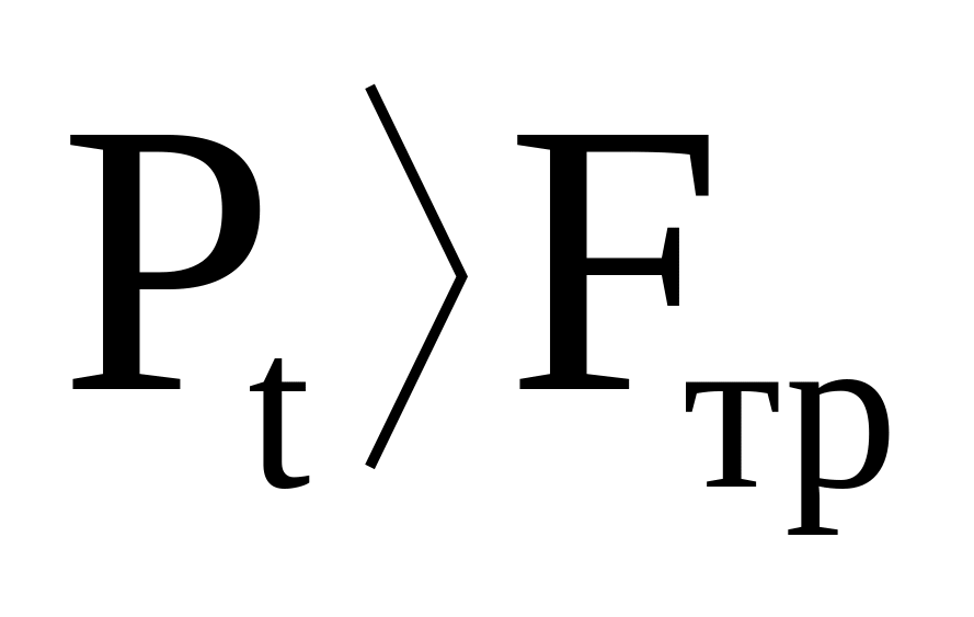 Fтр – сила трения; Р – сила тяжести; Pt – продольная составляющая Р; Pn – нормальная составляющая Р.