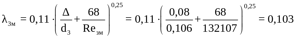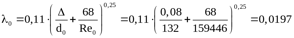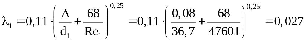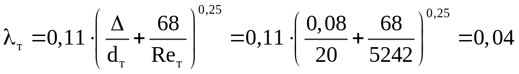 Найденные значения чисел Рейнольдса и безразмерных коэффициентов Дарси подставляем в формулу (3) и находим безразмерный коэффициент потерь на трение по длине.