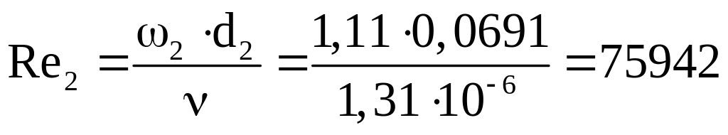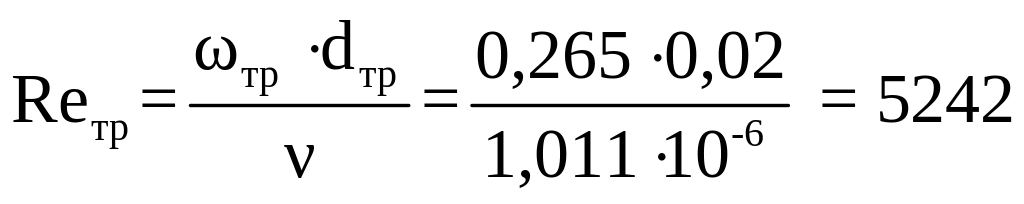 Рассчитаем критерий Рейнольдса в трубах теплообменника, м2/c – кинематический коэффициент вязкости воды при t=200C.