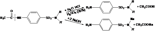 Препарати, в яких аміногрупа заміщена радикалом (стрептоцид розчинний, фталазол) спочатку гідролізують кип`ятінням з розведеною хлористоводневою кислотою.