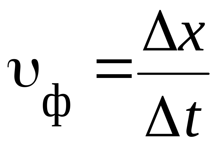 Будем искать закон движения бегущей волны в виде: yбег (х, t) yosin (х, t), где величина (х, t) t – х называется фазой бегущей гармонической волны. Неизвестную -дельта определим из условия совпадения фаз колебаний частиц среды х х + х в точке х и в точке х + х (рис. 6.4), до которой распространится возбуждение (уплотнение) к моменту времени t + t. Тогда, сравнивая аргументы функций yбег(х, t) и yбег(х + х, t + t), приходим к равенству: