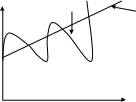 На рисунке 1 представлена возможная картина цикла. На оси абсцисс откладываем годы. На оси ординат – объем ВВП как наиболее общий показатель экономической активности. Прямая линия изображает тенденцию экономического роста (тренд), то есть представляет динамику объема потенциального ВВП во времени. Волнообразная линия изображает фактическое циклическое развитие экономики, то есть представляет динамику во времени объема фактического ВВП (в номинальном выражении).