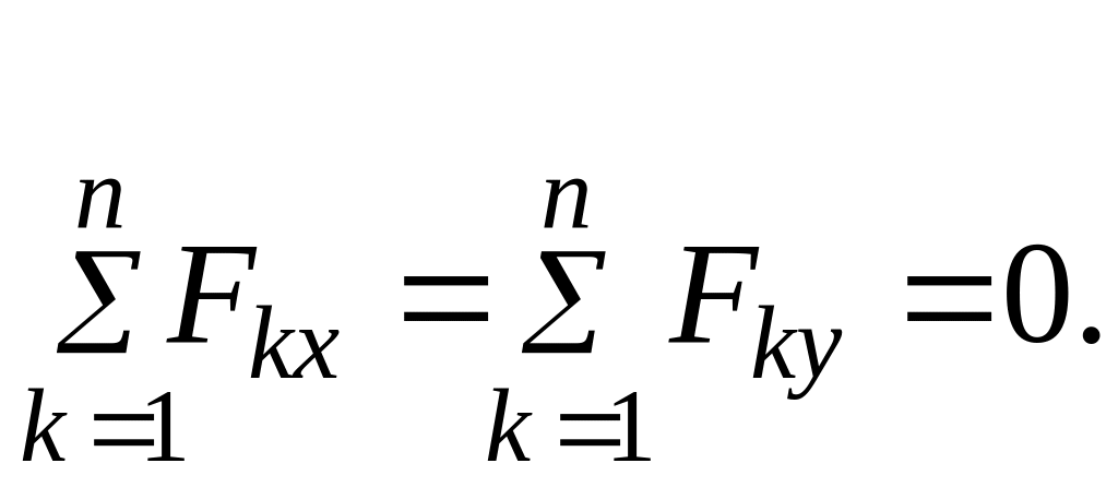 В случае плоской системы сходящихся сил для условия равновесия получаем следующие уравнения