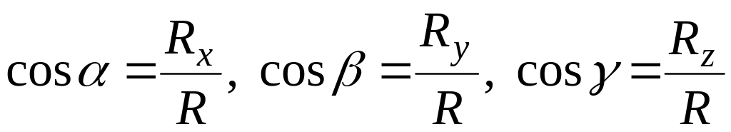 Углы между направлением равнодействующей и координатными осями находятся при помощи направляющих косинусов