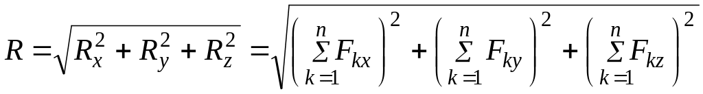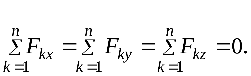 где Fkx, Fky і Fkz – проекции соответствующих сил на координатные оси.