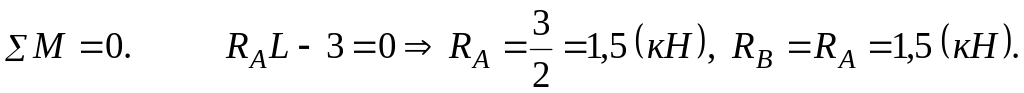 то остается только определить их направления. Чтобы момент пары был направлен по часовой стрелке, реакция RВ должна быть направлена вверх, а RА – вниз.