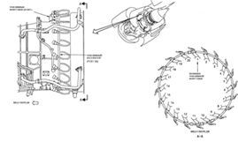 Топливный коллектор питает 20 топливных форсунок (рис. 37) топливом из основного регулятора. Топливосборник соединяется с коллектором подачи с помощью Y-образной трубки, находящейся в положении «на 6 часов». Каждый полуколлектор питает по 10 топливных форсунок. Топливный коллектор соединяет основной регулятор и датчик расхода топлива и далее проходит через соединительное устройство, располагающееся в положении «на 9 часов».