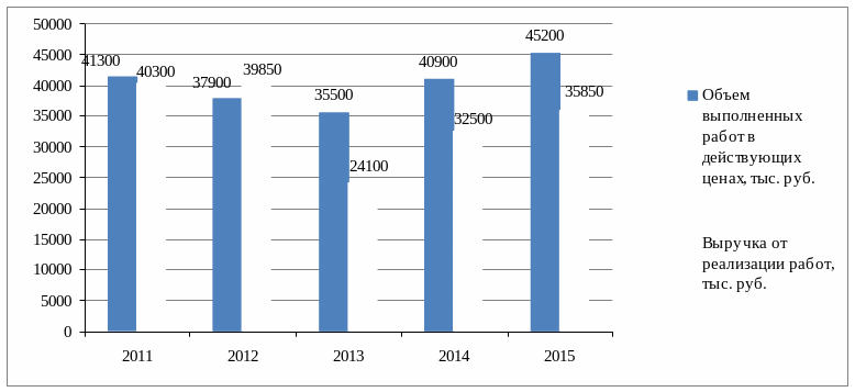 Как видно из рисунка 3, выручка от реализации меньше стоимости выполненных работ. Для предприятий дорожно-строительной отрасли это, прежде всего, может быть связано с несвоевременной оплатой за выполненные работы, то есть заказчики не вовремя оплачивают выполненные по их заказу строительно-монтажные работы.