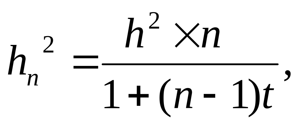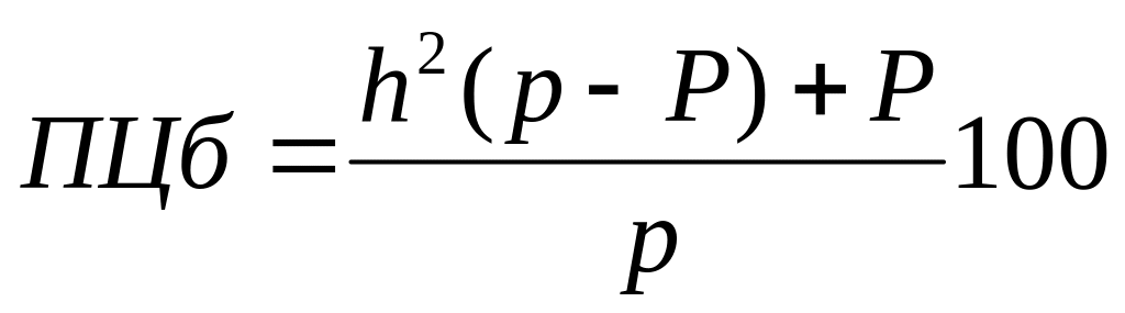 где h2 – коэффициент наследуемости удоя; t – коэффициент повторяемости; р – средний удой коровы за n лактации; Р – средний удой коров стада за п лактации; В – средний удой коров популяции за n лактации; hc2 – степень генетических различий между удоем отдельных стад (обычно hc2 = 0,1)