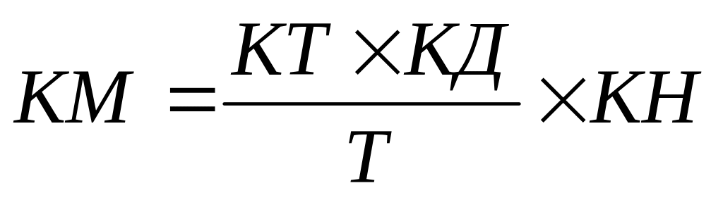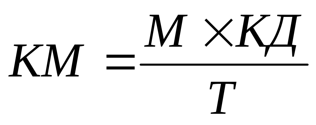 где КМ - количество мест; М - мощность фермы (количество коров); КД - срок пребывания коров в цехе, дни; Т - продолжительность полного технологического цикла (сумма сроков пребывания коров во всех цехах), дни.