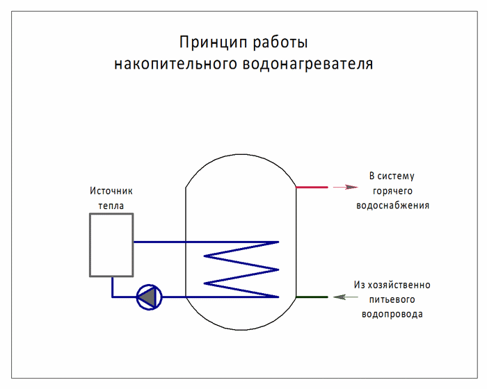 Рис. 9. Принцип работы накопительного водонагревателя.