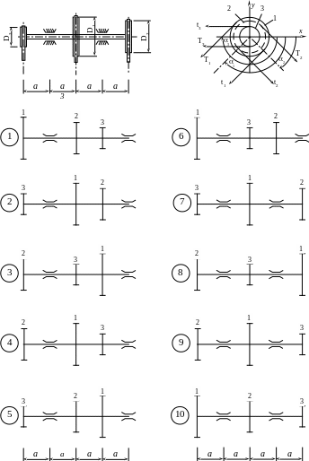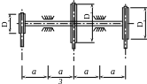 Сталевий вал (рис. 3) обертається із швидкістю n об/хв. і передає через два ведених шківи потужності, які задані в таблиці 5. Визначити діаметр вала, якщо [] = 160 МПа, а діаметри шківів відповідно: D1 = 60 см, D2 = 40 см, D3 = 30 см. Вихідні дані в таблиці 3.