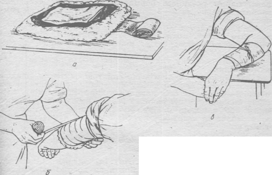 Підготуйте складені в 6-8 шарів марлю або полотно, шматок вощеного паперу чи клейонки, вату, бинт, воду кімнатної температури.