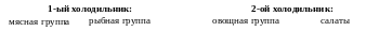 Самое оптимальное решение при хранении продуктов в горизонтальных холодильниках: каждое отделение использовать под одну группу: мясную, рыбную, овощную, салатную: |