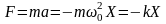 Данная сила F подобна силе упругости, пропорциональна смещению X и направлена в противоположную сторону смещению. В общем случае эта сила F называется квазиупругой силой, а коэффициент k- коэффициентом квазиупругой силы.
