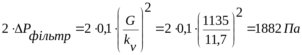 втрати тиску в двох фільтрах ГЕРЦ (d1",
