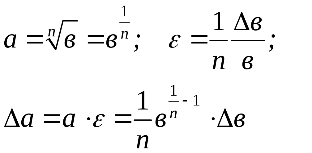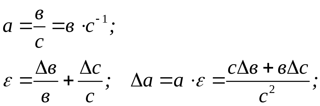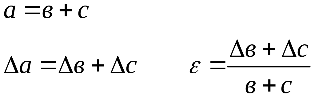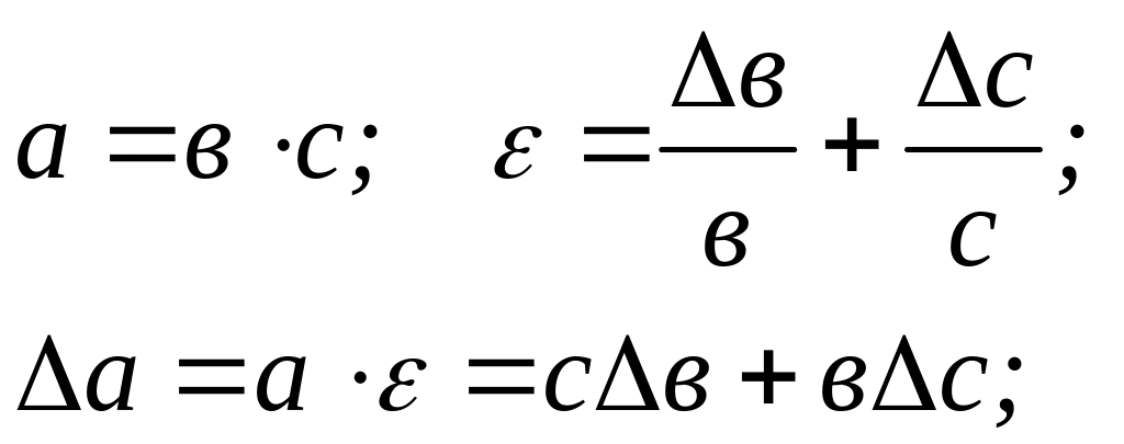 Якщо вираз для шуканої величини не містить значків ”+”чи “-“ (є термом), зручніше спочатку знаходити відносну похибку відповідно до правила: відносна похибка результату дорівнює сумі відносних похибок окремих змінних, взятих із такими коефіцієнтами, в якому степені вони входять у терм.