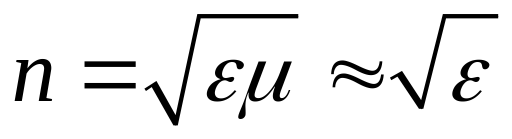 де: ε0 і μ0 – діелектрична і магнітна сталі для вакууму, ε і μ - діелектрична і магнітна сталі середовища.