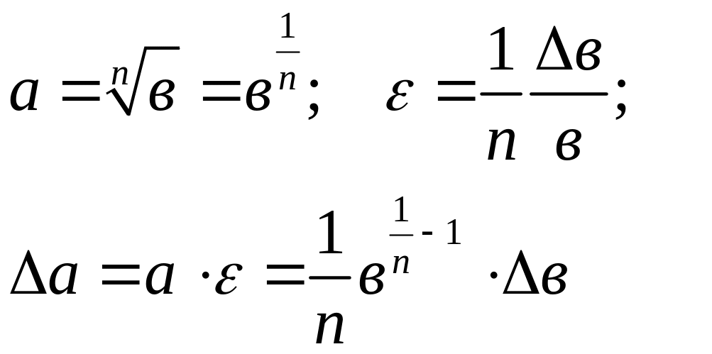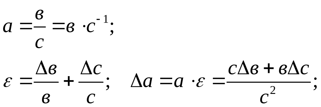 Якщо вираз для шуканої величини не містить значків ”+”чи “-“ (є термом), зручніше спочатку знаходити відносну похибку відповідно до правила: відносна похибка результату дорівнює сумі відносних похибок окремих змінних, взятих із такими коефіцієнтами, в якому степені вони входять у терм.