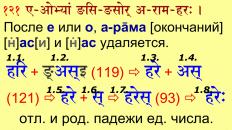 И правило 93 говорит, что в окончании буква "с", - то такая буква заменятся на висаргу (итли вишнусургу), и поэтому будет у нас , харехе (1.8.).