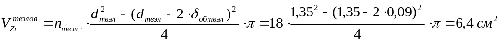 Объём занимаемый ураном (пренебрегаем зазором между оболочкой и топливом):