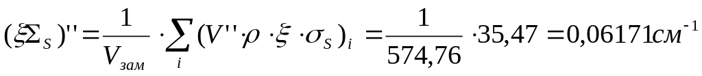 Вычислим теперь макроскопические параметры гомогенизированной активной зоны, нужные для оценки температуры тепловых нейтронов, а именно Σа и ξΣs. Для этого составим таблицу №1: