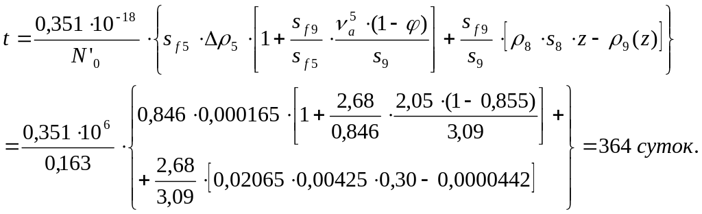 Теперь вычислим время работы реактора, соответствующее z = 0,30: