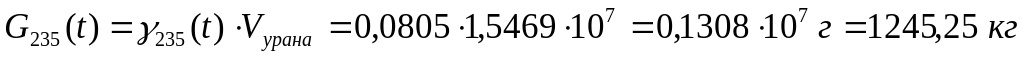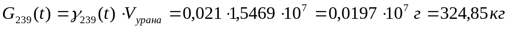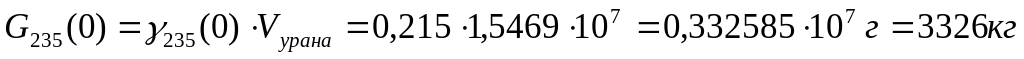 Умножая весовые концентрации на объем урана в реакторе, равный: