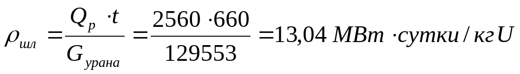 Для сравнения вычислим время работы реактора при том же выгорании урана без учета накопления плутония: