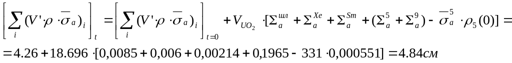 Для определения реактивности в момент времени t нужны концентрации шлаков и отравляющих осколков (точнее, их макроскопические сечения). Находим: