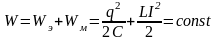 При свободных колебаниях происходит периодическое превращение электрической энергии Wэ, запасенной в конденсаторе, в магнитную энергию Wм катушки и наоборот. Если в колебательном контуре нет потерь энергии, то полная электромагнитная энергия системы остается неизменной: