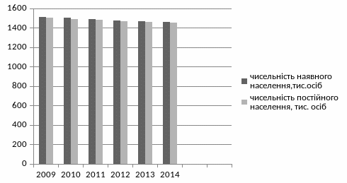 Таблиця 2.1 – Динаміка і чисельність наявного та постійного населення за 2009 -2014 рр.