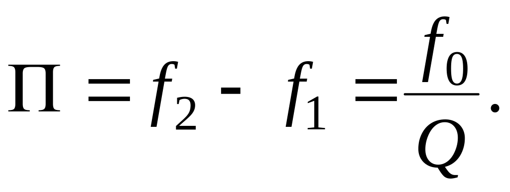 Если параллельный контур подключить к реальному источнику гармонического тока, то можно утверждать, что параллельный контур «выделяет» напряжение резонансной частоты, а также сигналы, частоты которых находятся в полосе (диапазоне) частот примыкающей к резонансной частоте. Этот диапазон частот называют полосой пропускания контура. Границы полосы пропускания определяют частоты f1 и f2. Полоса пропускания контура определяется формулой