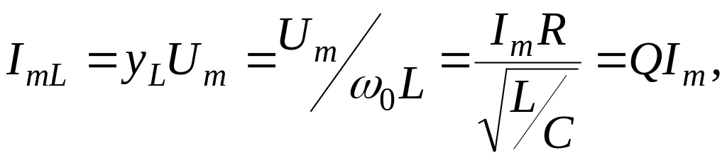 Поскольку реактивные проводимости на резонансной частоте равны и на них одно и тоже напряжение, то амплитуды токов на реактивных элементах контура равны ImL = ImC . К тому же,
