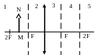 1321.На рисунке изображено положение главной оптической оси линзы, ее главных фокусов и предмета MN. Получится изображение предмета