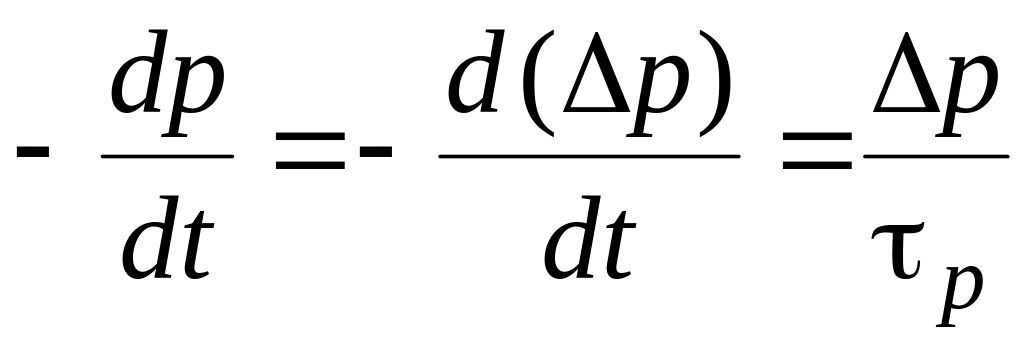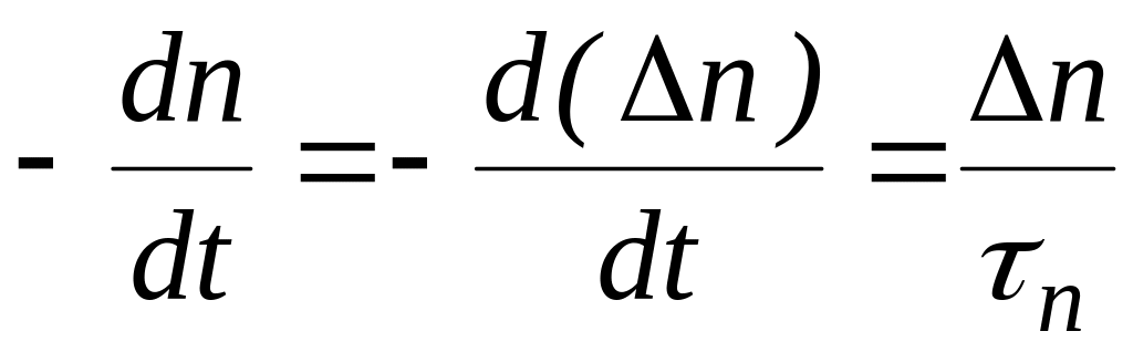 Рассмотрим, как изменяется с течением времени избыточная концентрация неравновесных носителей. Количество носителей, рекомбинирующих в единицу времени в единице объема (быстрота изменения концентрации) пропорциональна избыточной концентрации, коэффициент пропорциональности имеет размерность, обратную размерности времени: