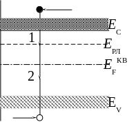 Чаще всего происходит рекомбинация с участием ловушек. Рекомбинационными ловушками являются глубокие уровни, т.е. уровни достаточно удаленные от краев запрещенной зоны. Такие уровни создают некоторые примеси и дефекты.