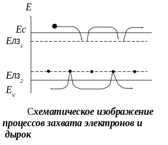 Кроме рекомбинационных ловушек, в запрещенной зоне полупроводника могут присутствовать ловушки захвата. Это мелкие уровни, способные захватывать носители какого-либо одного типа, а затем через некоторое время возвращать их в ту же зону (электроны – в свободную, дырки – в валентную).