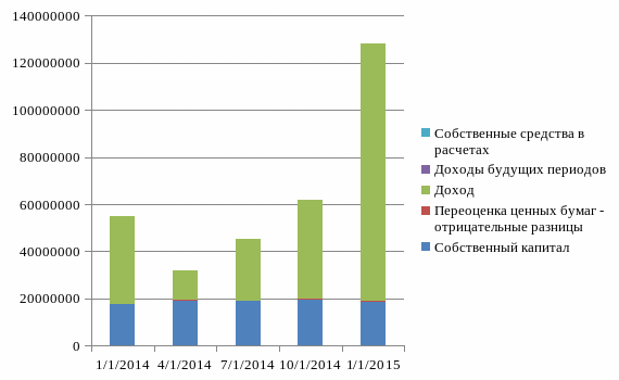 Показатель собственных средств-нетто имеет тенденцию роста. На начало анализируемого периода агрегат составил 12 693 461 тыс.руб., а к началу 2015 года увеличился на 1 136 680 тыс.руб. (на 8,95%).