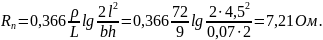 4. Производим расчет сопротивления полосового заземлителя из условия, что ширина полосы b = 7 см по формуле:
