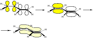 Негибридизованные рz-орбитали каждого атома углерода расположены перпендикулярно плоскости сигма-скелета и параллельны друг другу. Это создаёт условия для их взаимного перекрывания. Перекрывание рz-орбиталей происходит как между первым и вторым, так и третьим и четвёртым, вторым и третьим атомами углерода. В этой системе происходит обобществление р-электронов. 4р-электрона одновременно находятся в поле четырёх ядер атомов углерода, образуя единое сопряжённое π-электронное облако, которое делокализовано, т.е. равномерно распределено по всей системе. Так возникает π, π-сопряжение вследствие перекрывания рz-орбиталей π-связей.